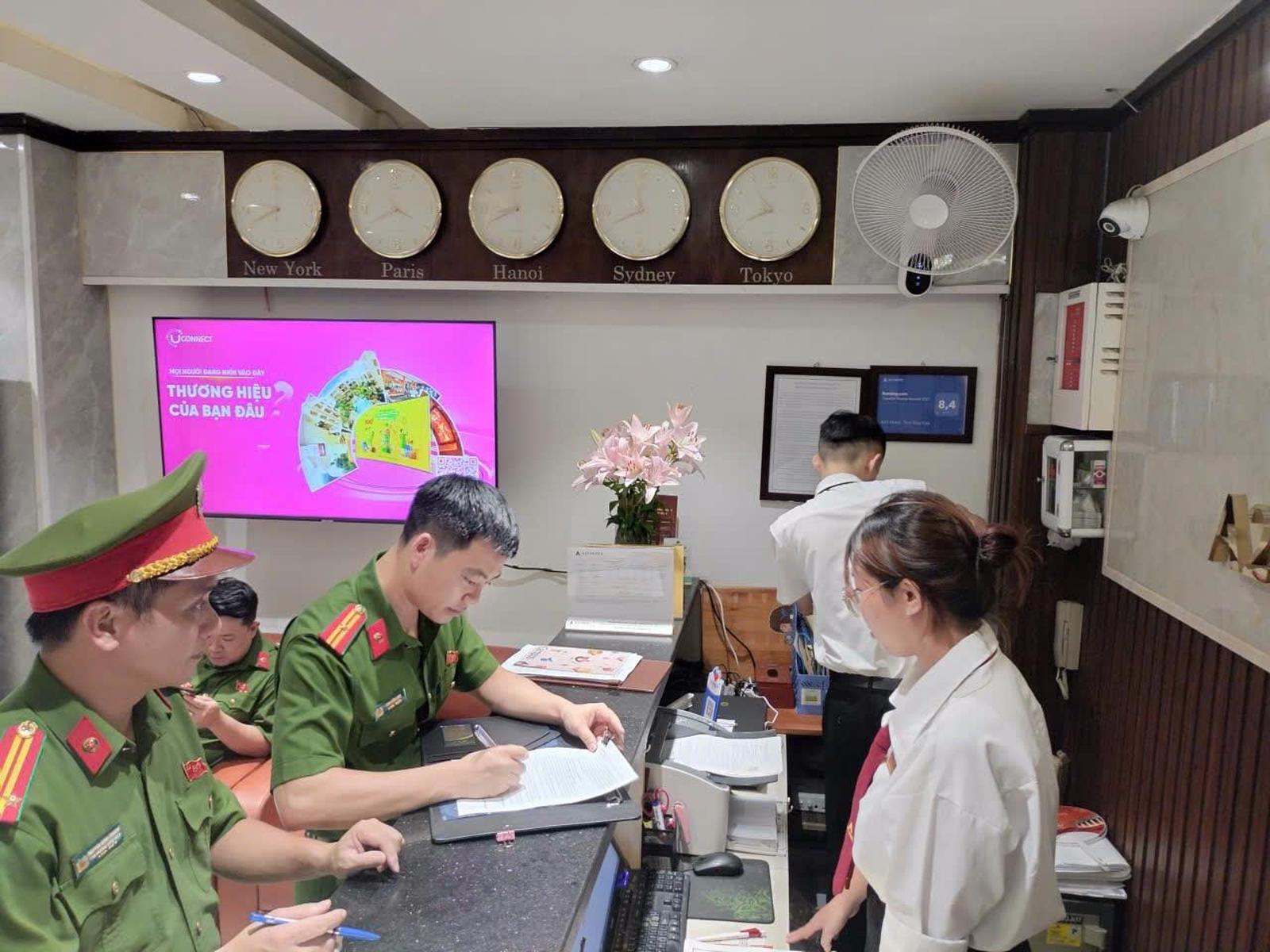 Lực lượng công an kiểm tra cơ sở lưu trú. Ảnh: CA Hà Nội