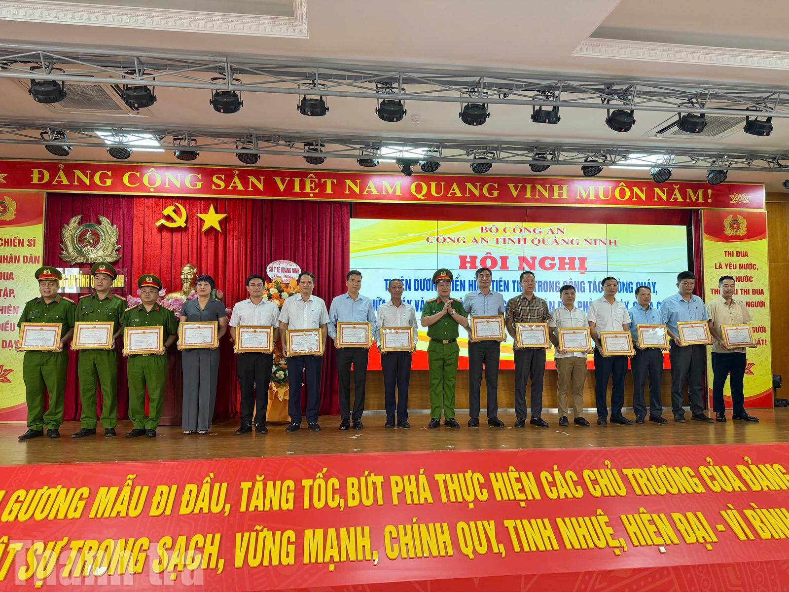 Lãnh đạo Công an tỉnh Quảng Ninh trao khen thưởng cho những điển hình tiêu biểu. Ảnh: Hoàng Hưng