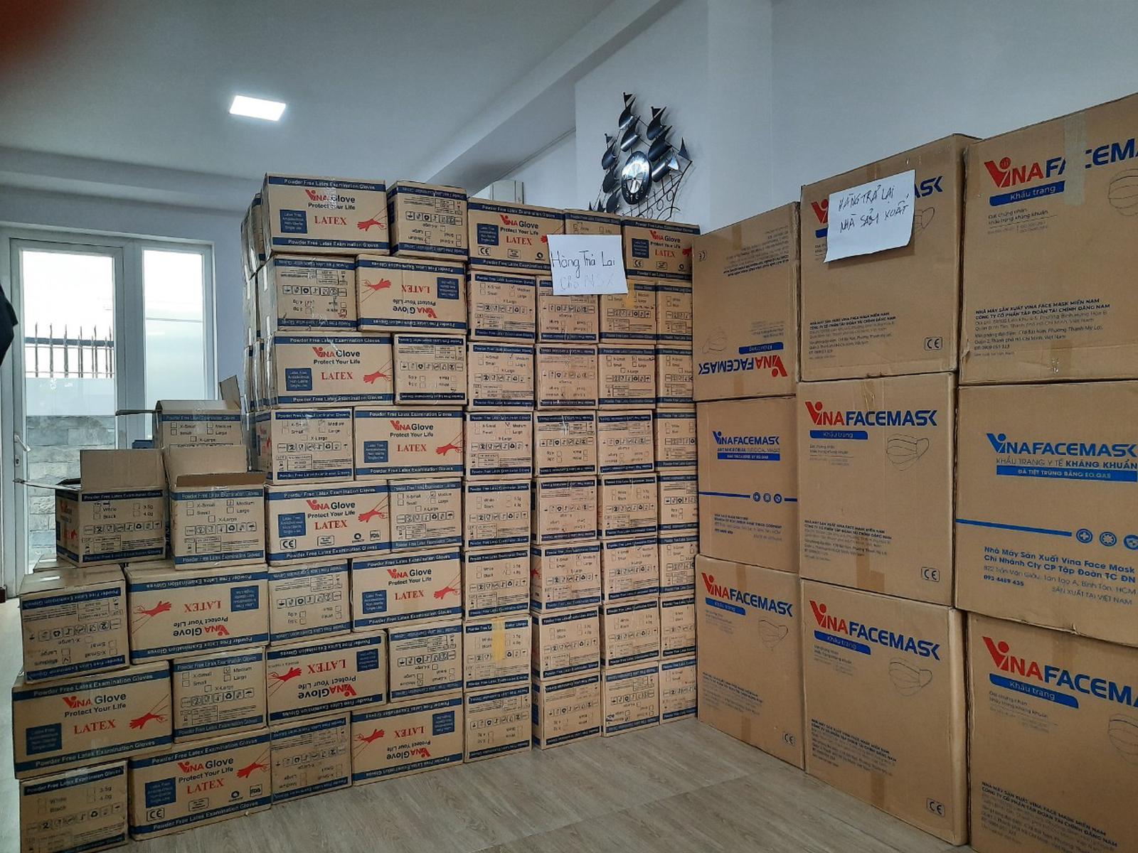 Tại Nhà máy Sản xuất VINA FACE MASK MIỀN NAM, địa chỉ số 151/105 Liên khu 4-5, phường Bình Hưng Hòa B, quân Bình Tân, đang chứa trữ hàng hóa là găng tay khẩu trang các loại.