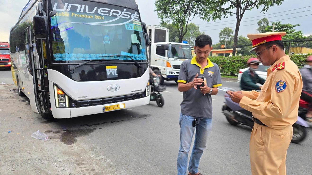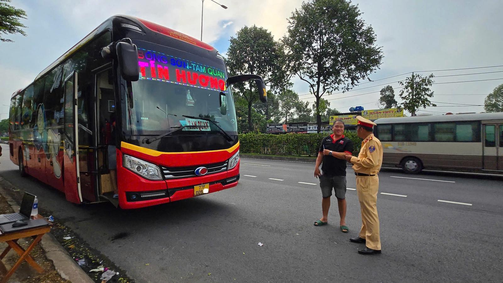 Một trong số tài xế xe khách bị CSGT TPHCM dừng xe kiêm tra thông qua thiết bị giám sát hành trình.