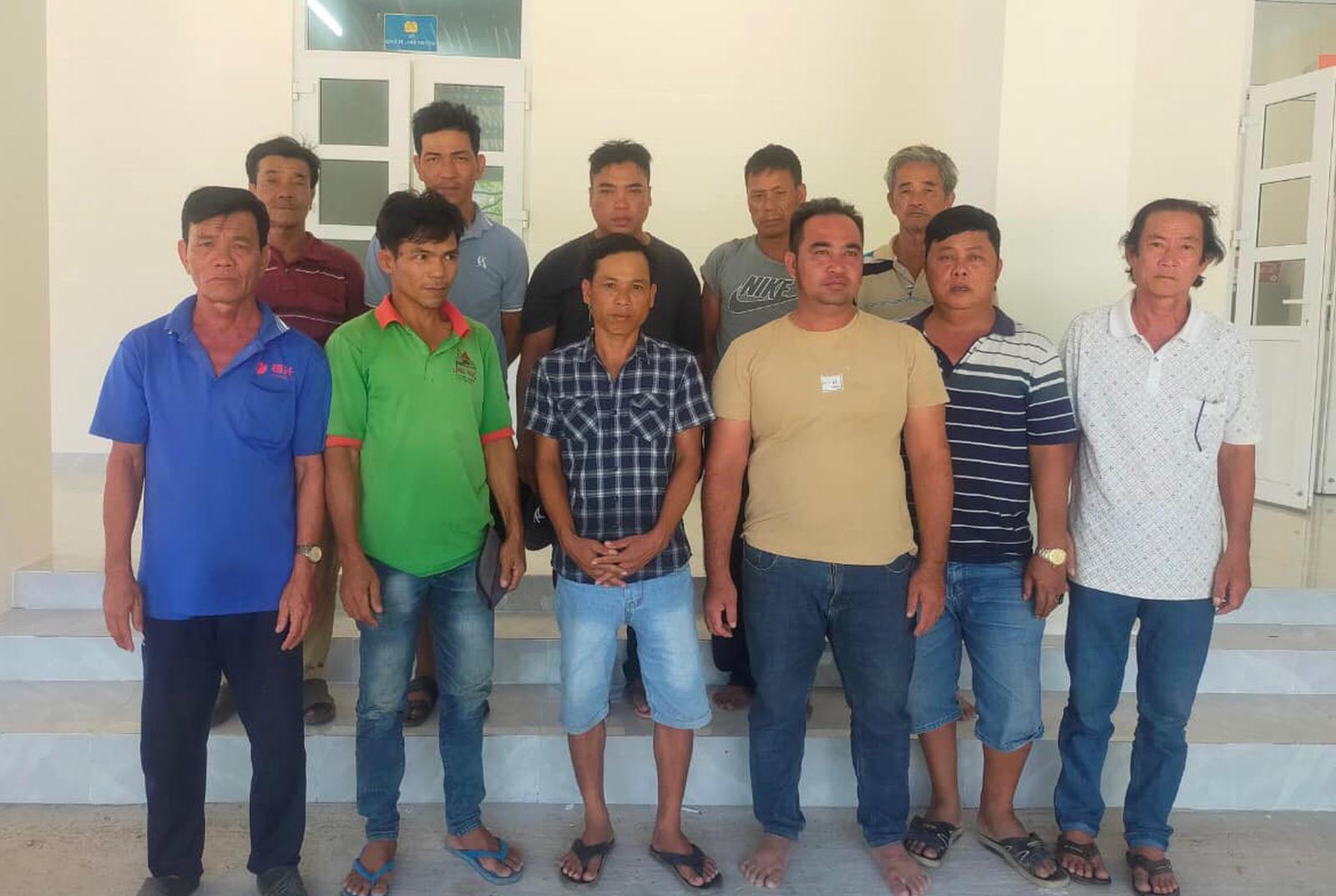 Công an huyện Thuận Nam đưa 11 đối tượng liên quan về trụ sở để làm việc.