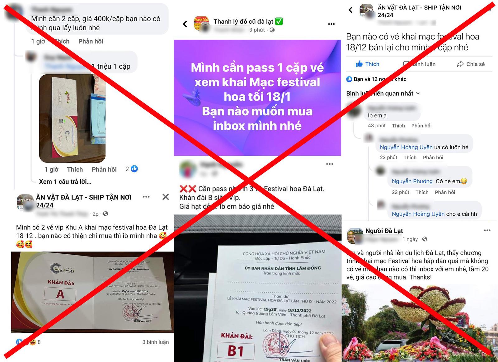 Theo đó, trước thềm Lễ Khai mạc Festival hoa Đà Lạt lần thứ IX - 2022 diễn ra vào tối ngày 18/12/2022, cơ quan chức năng phát hiện tình trạng rao bán giấy mời với nhiều mức giá tiền khác nhau trong các diễn đàn, hội, nhóm trên không gian mạng.