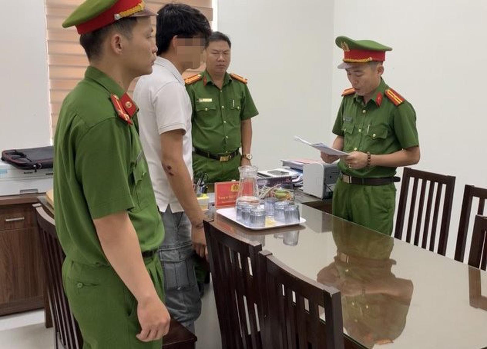 Thi hành lệnh bắt tạm giam đối với bị can N.Đ.H.C. Ảnh: Công an cung cấp