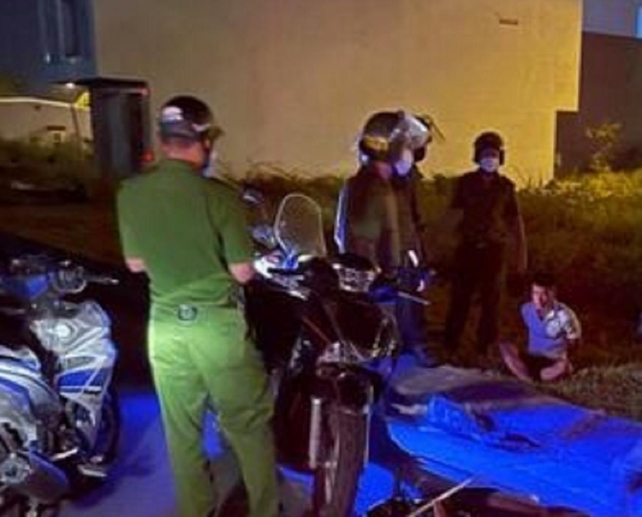 Hai đối tượng bị trấn áp bắt giữ khi tham gia vào 1 nhóm cùng các đối tượng khác mang dao phóng lợn tham gia giao thông trên phố vào đêm 9/5.