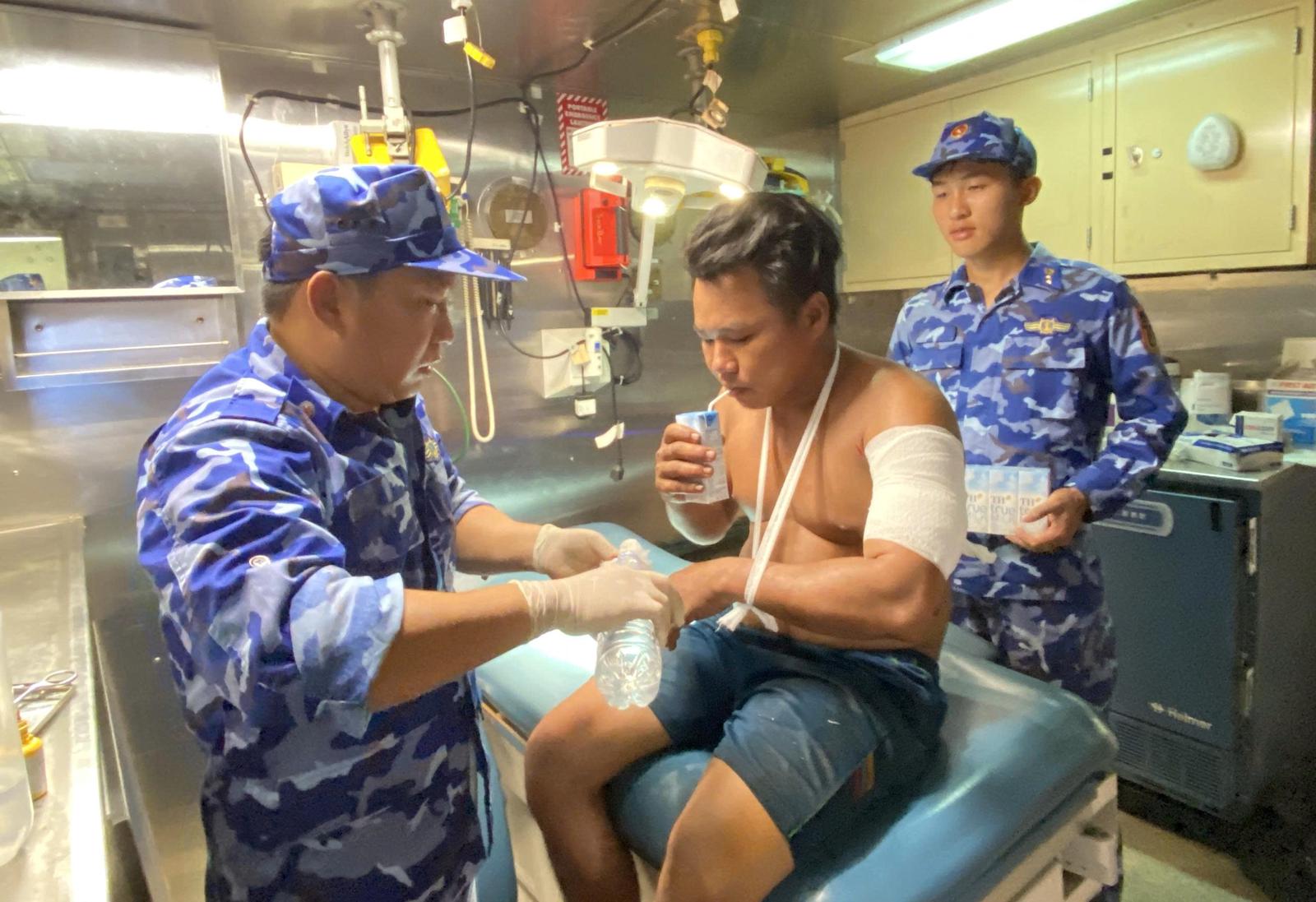 Cấp cứu ngư dân bị nạn trên biển. Ảnh: Định Huấn