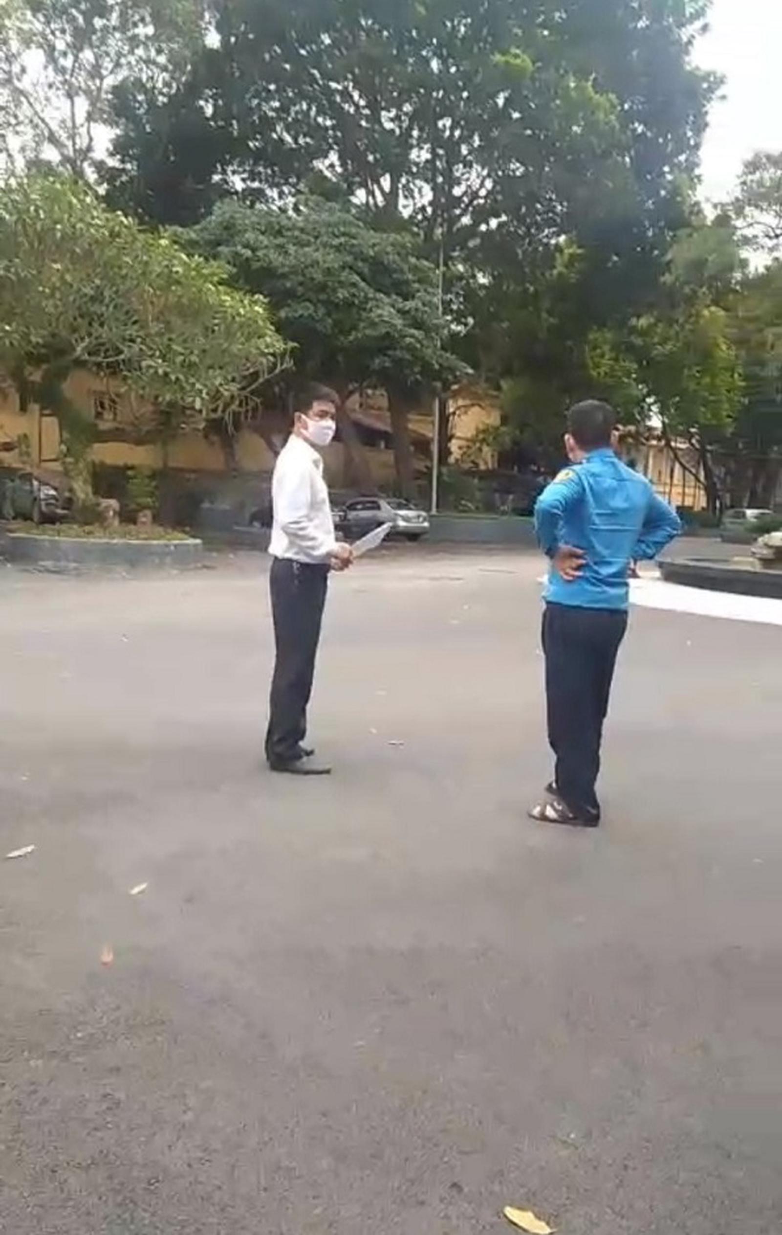 Người của Doanh nghiệp bị cướp hồ sơ trình bày để bảo vệ UBND TP Phúc Yên cho vào nộp hồ sơ. Ảnh TN