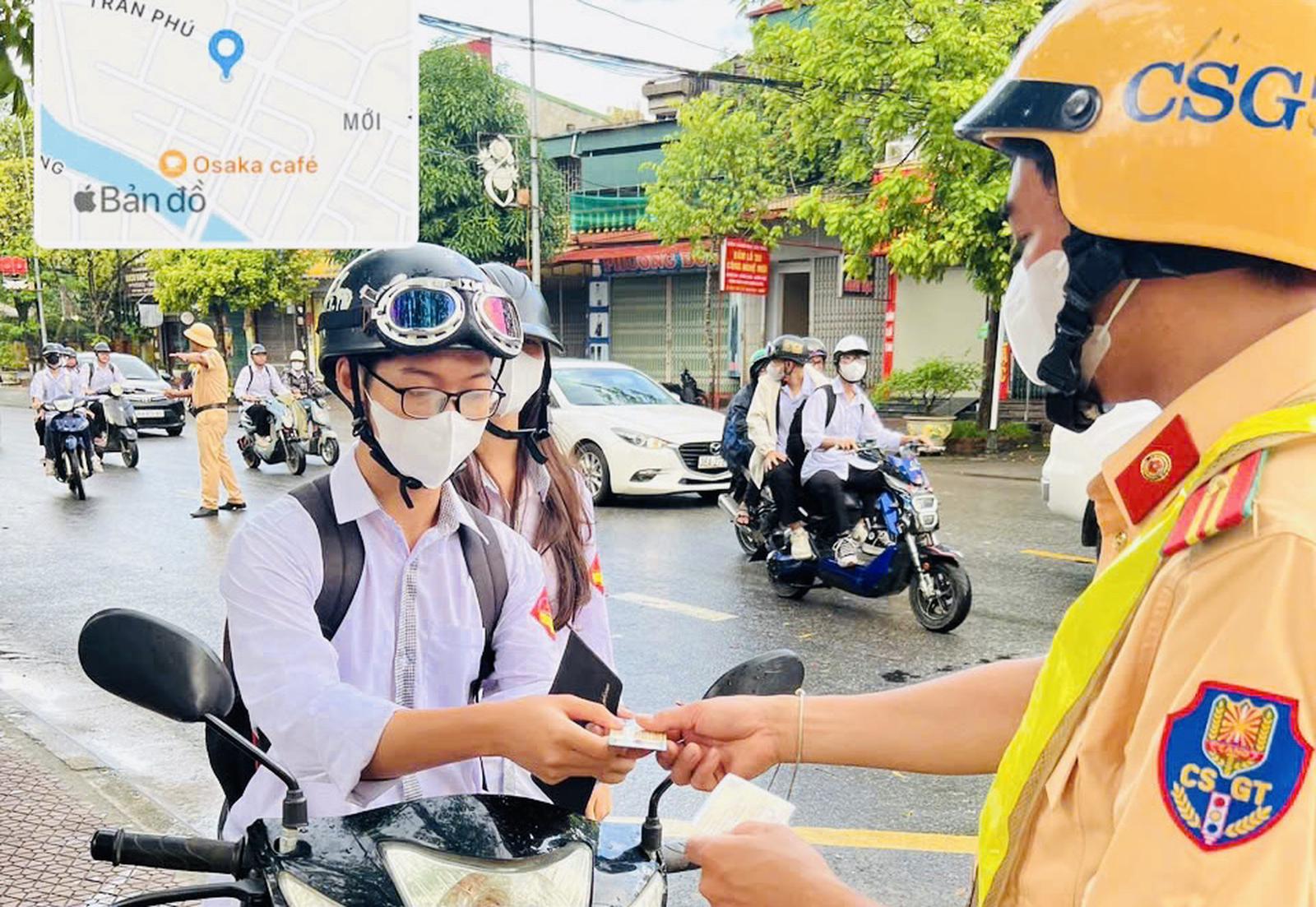 Công an Thanh Hoá kiểm tra học sinh tham gia điều khiển phương tiện giao thông. Ảnh: Công an Thanh Hoá