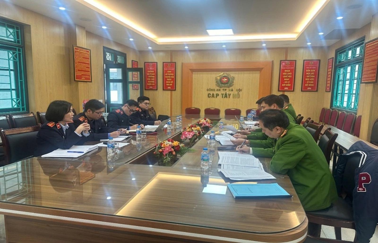 Theo thông tin từ Viện KSND thành phố Hà Nội, đoàn công tác của Viện KSND khu vực 1 do Phó Viện trưởng Viện KSND khu vực 1 Đoàn Thị Vĩnh Hà làm trưởng đoàn đã tiến hành làm việc với Công an các phường Cửa Nam, Hoàn Kiếm, Ba Đình, Ngọc Hà, Hồng Hà, Tây Hồ, Phú Thượng, Giảng Võ về việc thực hiện Quy chế phối hợp trong công tác tiếp nhận, phân loại, thụ lý, quản lý và giải quyết nguồn tin về tội phạm.