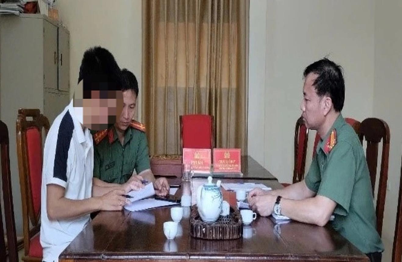 Ông L.A.K. làm việc với cơ quan công an. Ảnh: Công an Vĩnh Phúc