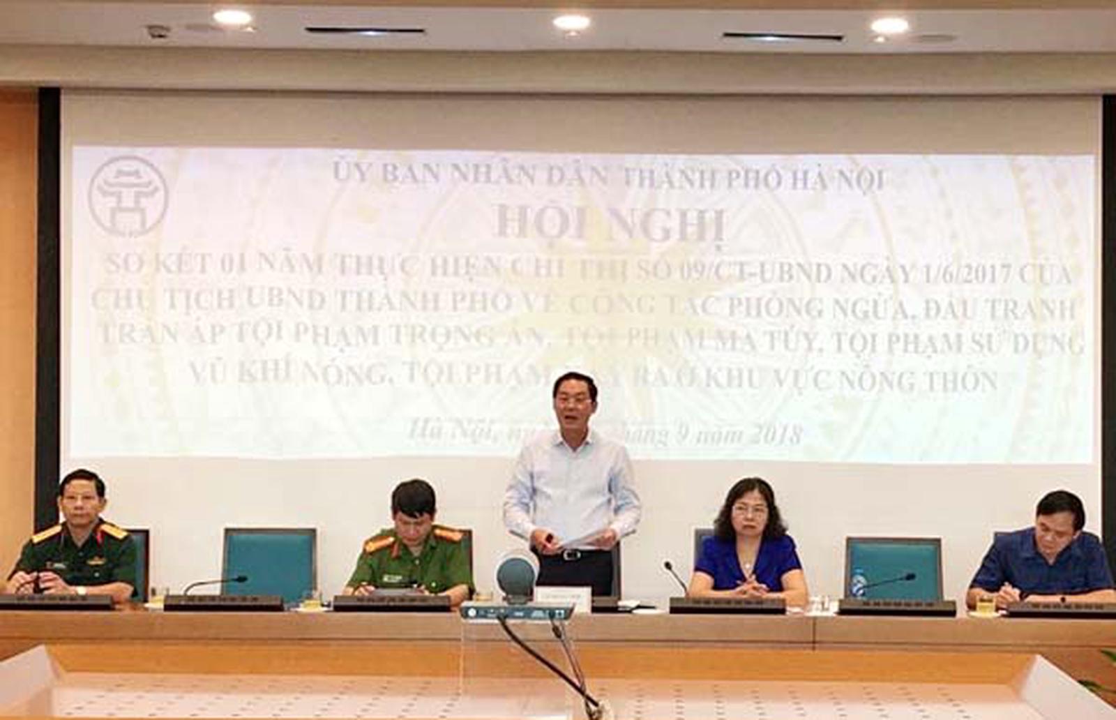 Chiều ngày 18/9, UBND TP Hà Nội tổ chức hội nghị sơ kết 1 năm thực hiện Chỉ thị 09 về công tác phòng ngừa, đấu tranh, trấn áp tội phạm trọng án, tội phạm ma túy, tội phạm sử dụng vũ khí nóng, tội phạm xảy ra ở khu vực nông thôn.