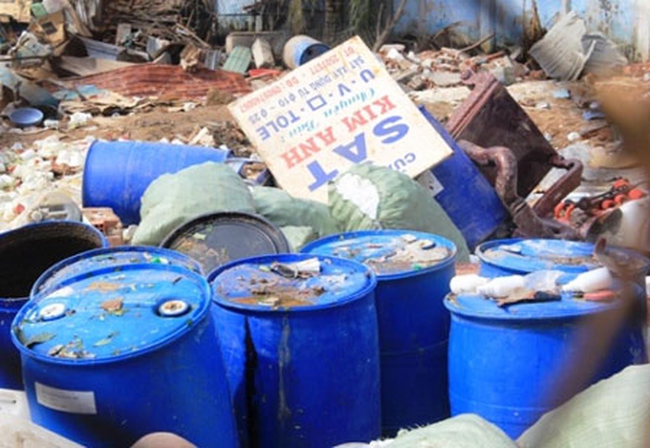 Nhiều thùng phuy đựng hóa chất được phát hiện tại hiện trường vụ nổ