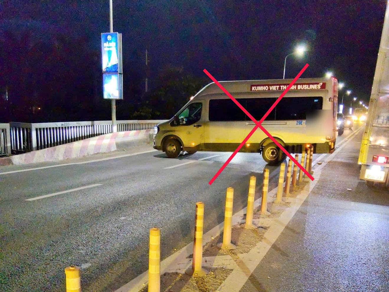 Cụ thể, hồi 19giờ18 ngày 8/7, tại khu vực đầu cầu Thăng Long (phường Đông Ngạc, TP Hà Nội), xe ô tô khách 16 chỗ, biển kiểm soát 29E-003xx, đang lưu thông theo hướng Phạm Văn Đồng đi Võ Văn Kiệt, đã bất ngờ quay đầu ngay tại đầu cầu, tiềm ẩn nguy hiểm cho các phương tiện xung quanh.