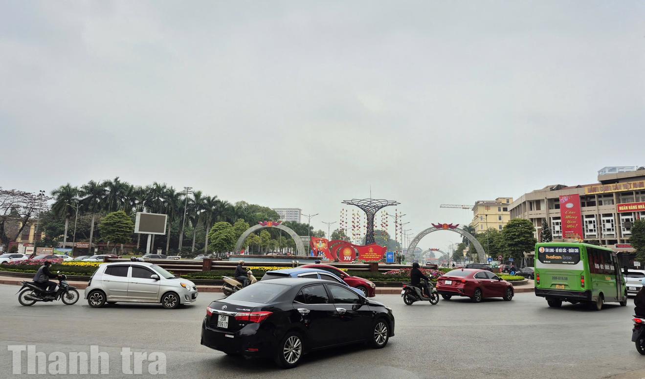 Phương tiện giao thông có mật độ cao tại một nút giao trung tâm tỉnh Thái Nguyên. Ảnh: TM