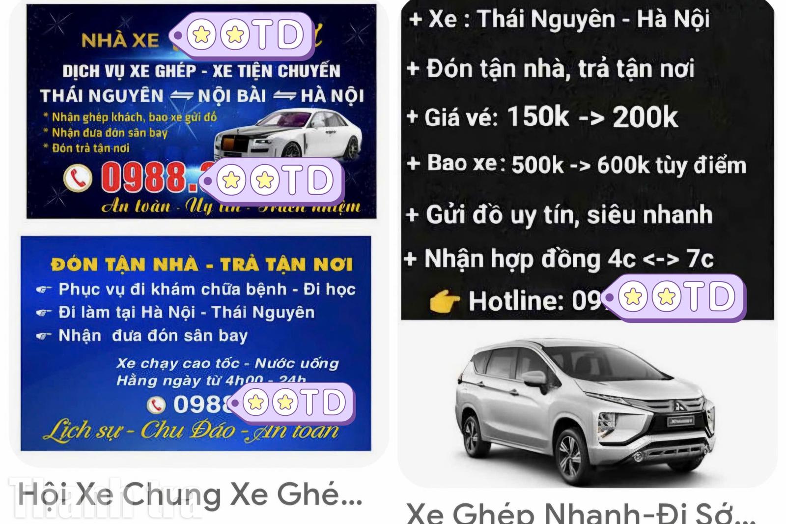 Dịch vụ xe ghép, xe tiện chuyến quảng cáo tràn lan trên mạng xã hội. Ảnh: TM