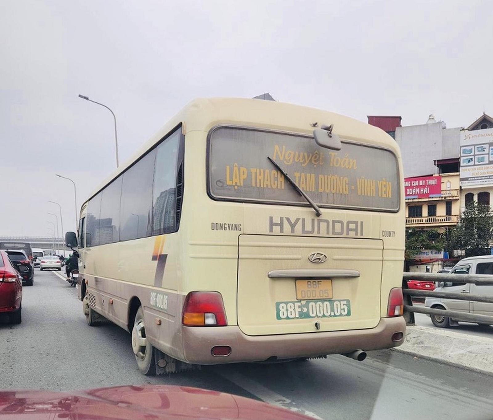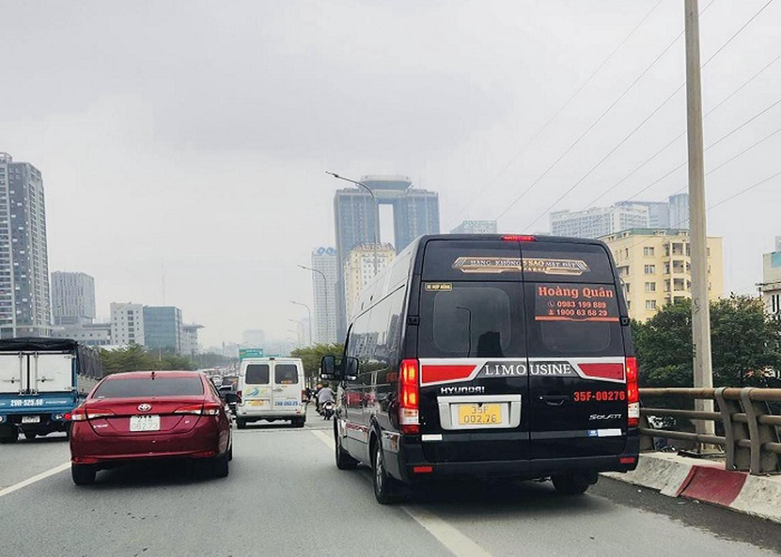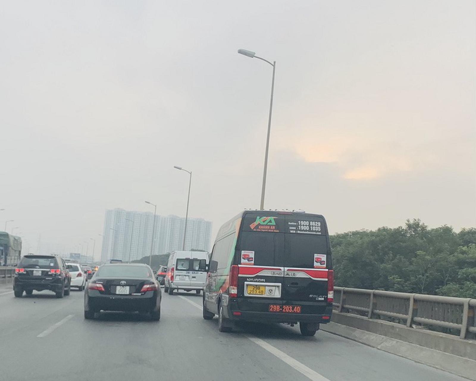 Xe khách thường xuyên đi vào làn khẩn cấp (ảnh chụp lúc 8h30, ngày 11/1, tại đoạn cầu Thăng Long - bến xe Mỹ Đình). Ảnh: TQ