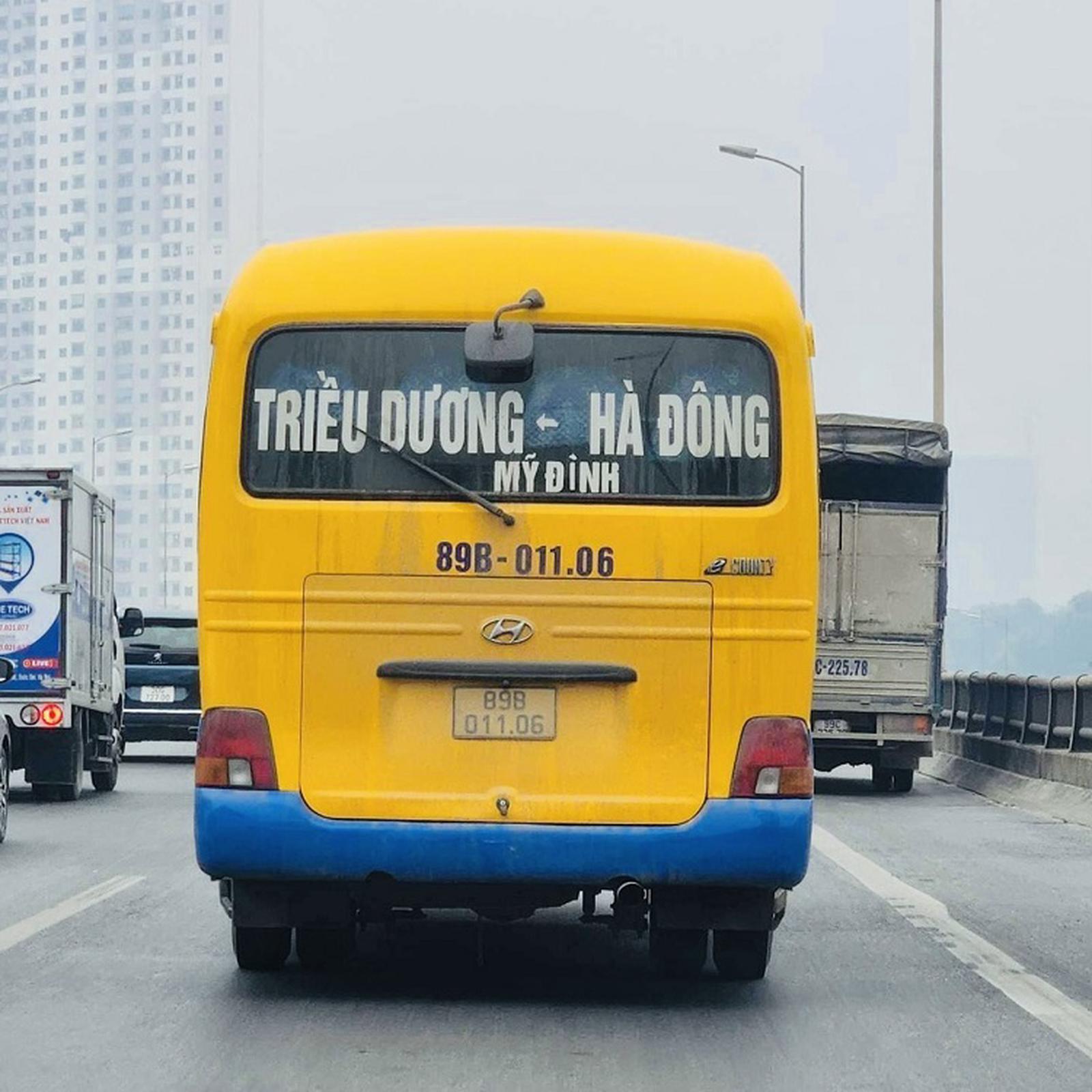 Tài xế xe khách biển số 89B 011.06 khi phát hiện phóng viên ghi hình đã tạt đầu xe uy hiếp (ảnh chụp lúc 6h45, ngày 10/1, đoạn Nguyễn Xiển - cầu Thanh Trì). Ảnh: TQ