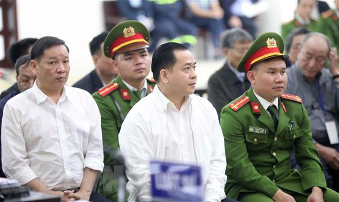 Bị cáo Phan Văn Anh Vũ (sinh năm 1975, Chủ tịch Hội đồng quản trị Công ty cổ phần Xây dựng 79, Công ty cổ phần Bắc Nam 79, Công ty TNHH I.V.C, Công ty cổ phần đầu tư Nhất Gia Phúc) và các bị cáo tại phiên tòa. (Ảnh: Doãn Tấn/TTXVN)