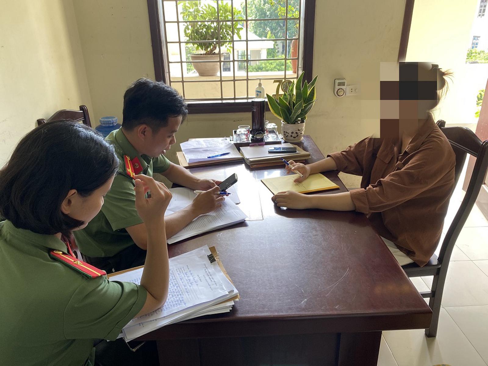 Công an huyện Anh Sơn làm việc với N.T.H.Q. Ảnh: CANA