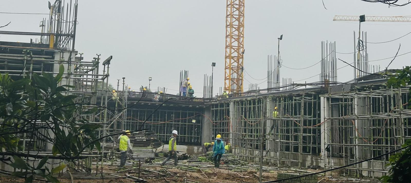 Công trình thi công chưa có giấy phép xây dựng của Trường Cao đẳng Y dược Thăng Long. Ảnh: Hương Trà
