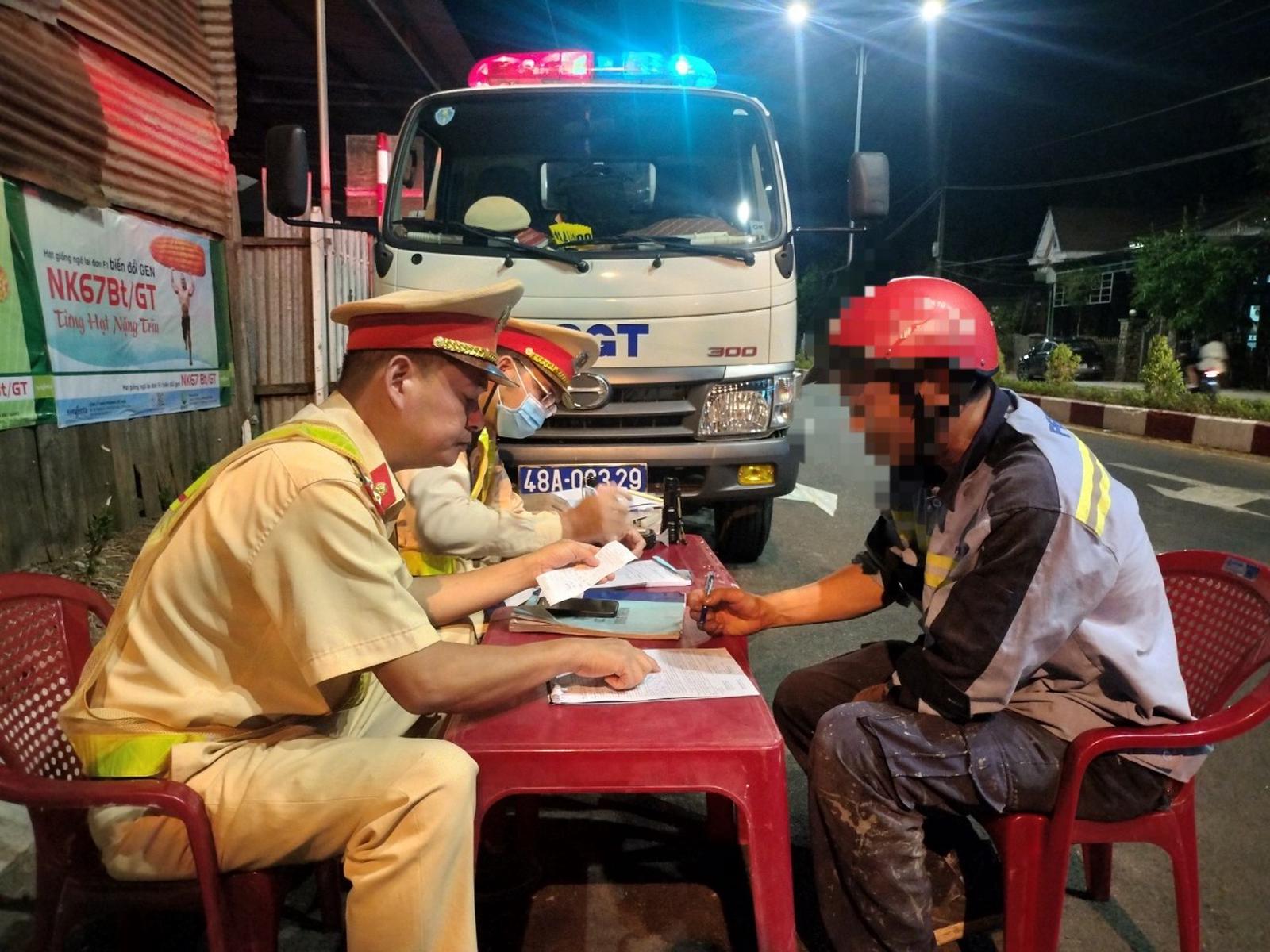 Tổ công tác lập biên bản xử lý người điều khiển phương tiện khi tham gia giao thông vi phạm nồng độ cồn. Ảnh: VL
