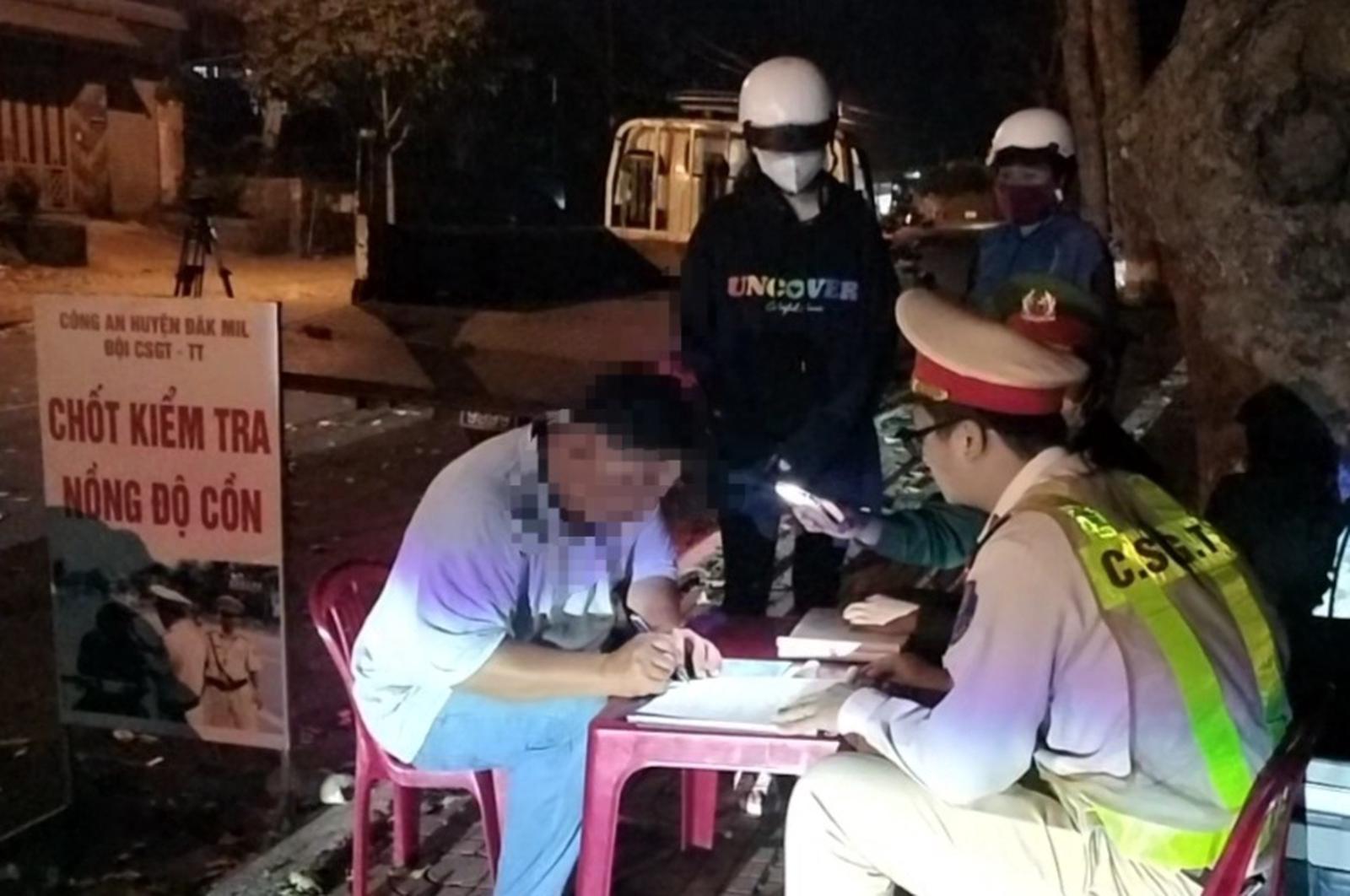 Trong 3 tháng đầu năm, lực lượng CSGT toàn tỉnh Đắk Nông đã kiểm tra, lập biên bản 1.442 trường hợp người điều khiển xe vi phạm nồng độ cồn. Ảnh: Vũ Linh