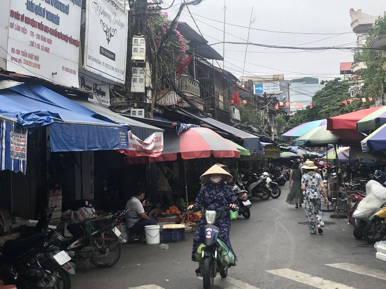 Lòng đường Trần Thuật Duật có nhiều tổ chức, cá nhân sử dụng làm nơi kinh doanh, bán hàng. Ảnh: Kim Thành