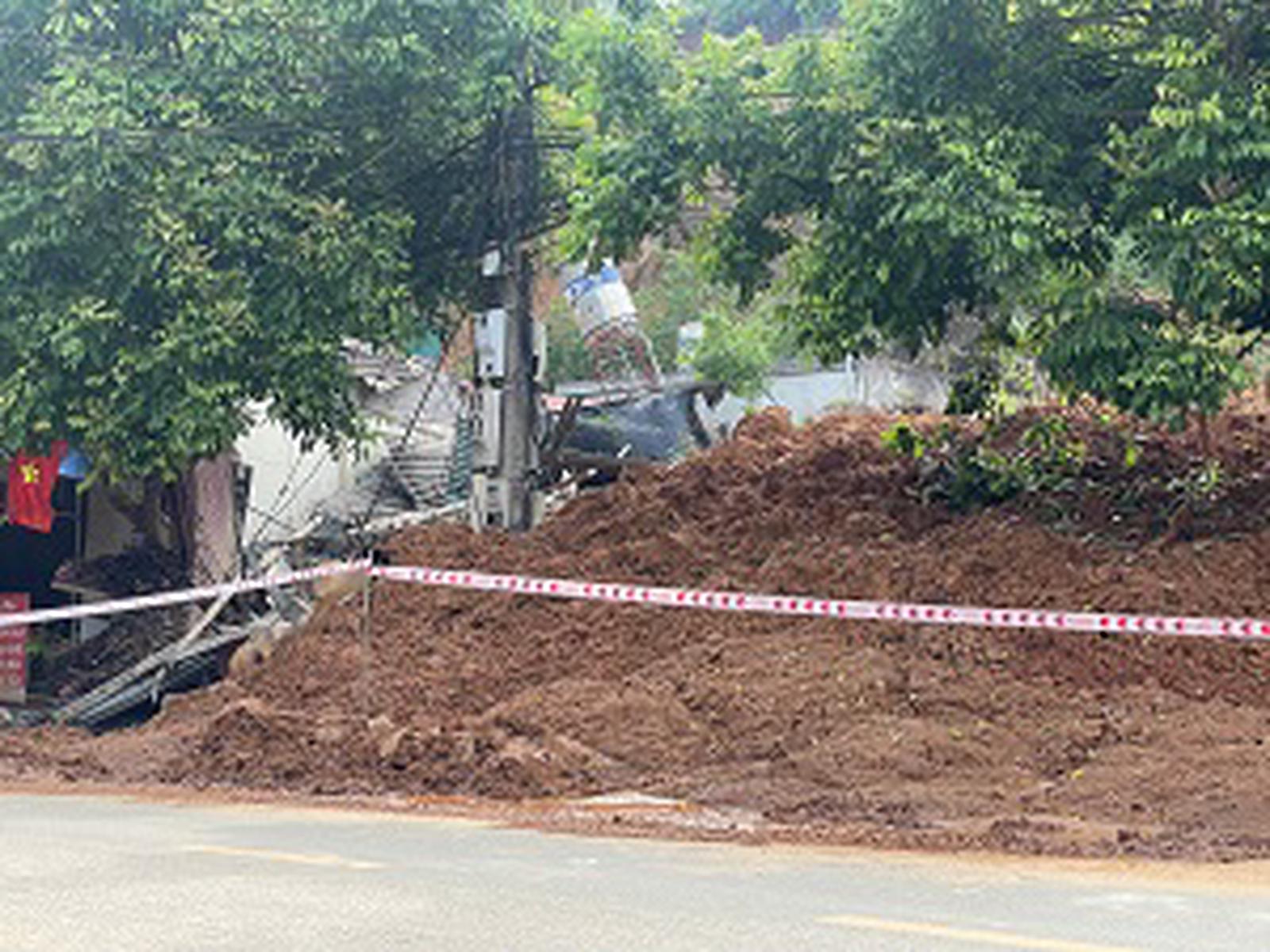 Hiện trường sạt lở có taluy dương rất cao, với vết sạt dài hơn 100m; khoảng 20.000m3 đất đã tràn xuống, vùi lấp 3 nhà dân.