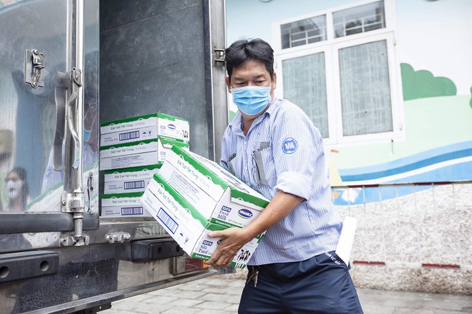 Nhân viên Vinamilk luôn nỗ lực để từng hộp sữa được kịp thời trao đến tay các em nhỏ khó khăn
