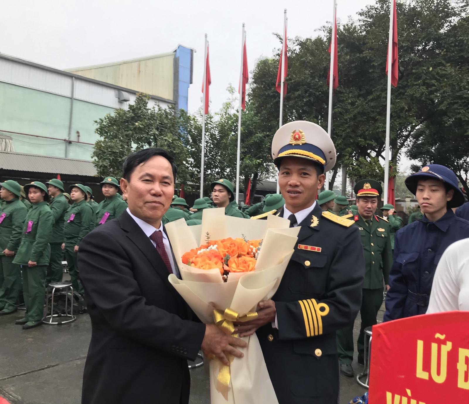 Lãnh đạo TP cùng lãnh đạo huyện Kiến Thụy giao nhận quân. Ảnh: KT