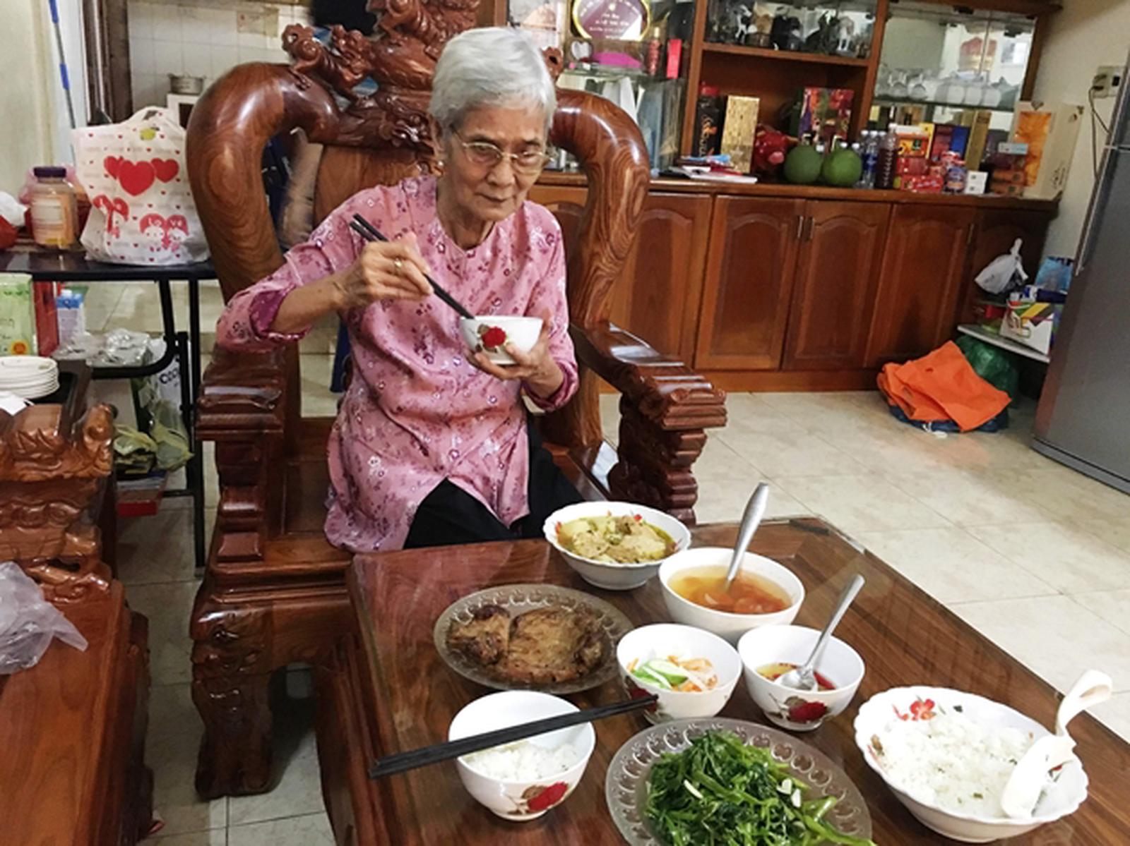 Bà Tâm với bữa cơm đạm bạc mỗi ngày. Ảnh: Mai Thắng