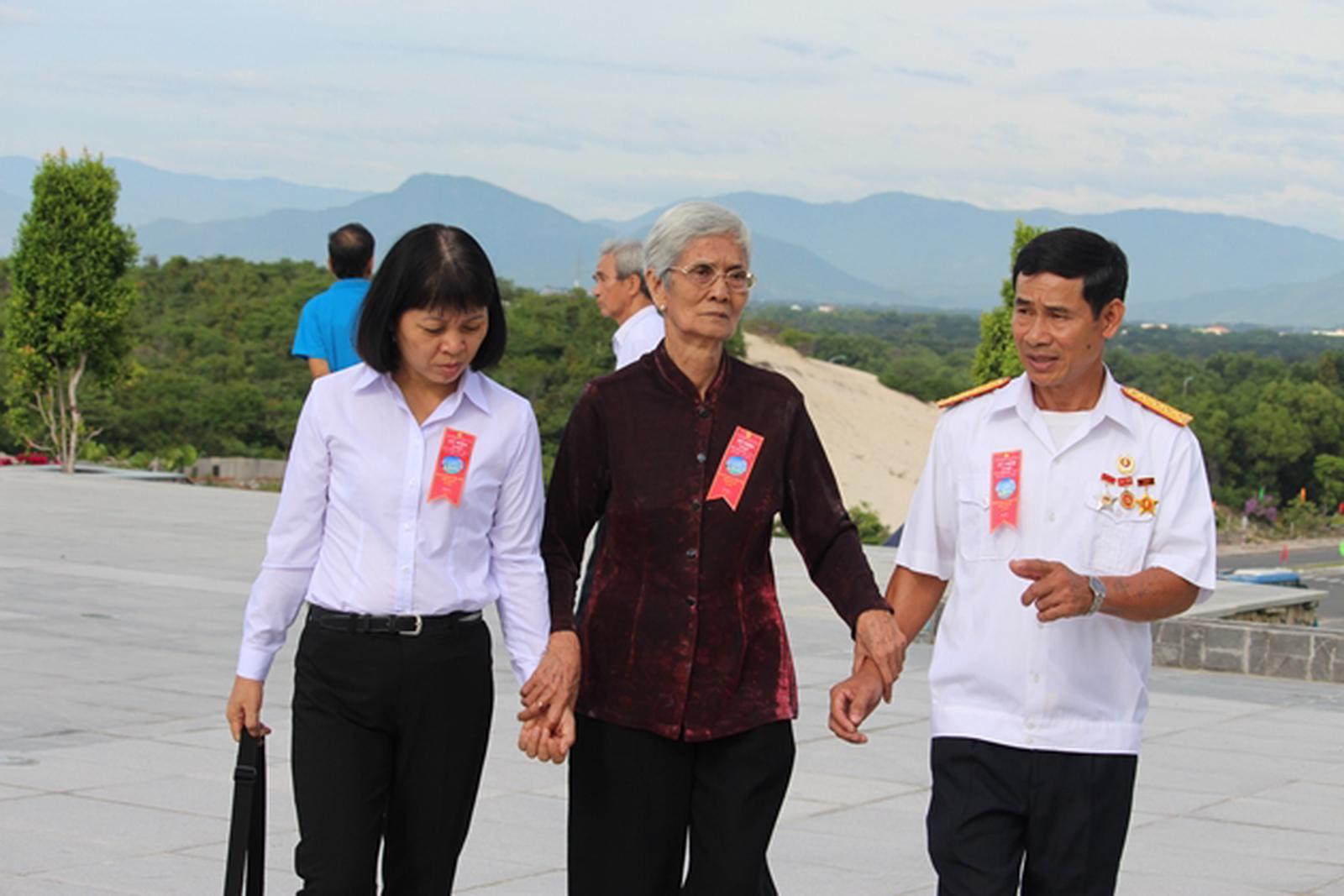 Bà Tâm buồn rầu vì “sự cố” không trao được 128 triệu đồng cho 64 gia đình liệt sĩ Gạc Ma tại bán đảo Cam Ranh. Ảnh: Mai Thắng