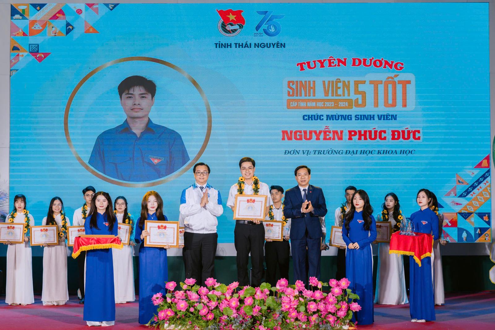 Phúc Đức nhận danh hiệu "Sinh viên 5 tốt" cấp tỉnh Thái Nguyên năm 2023 - 2024. Ảnh: NVCC