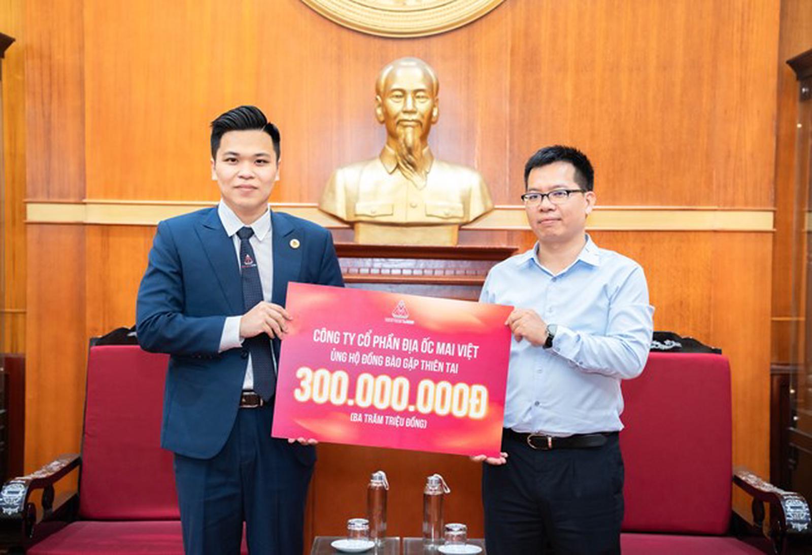 Công ty Cổ phần địa ốc Mai Việt ủng hộ số tiền 300 triệu đồng. Ảnh: Đức Minh