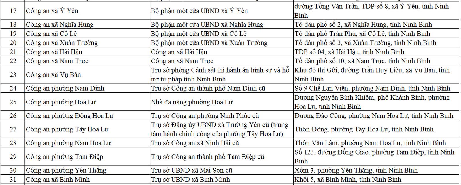 Tiếp đó, ngày 28/6/2025, tại Hà Nội, Bộ Công an đã công bố các quyết định về tổ chức bộ máy và nhân sự của Công an các tỉnh, thành phố theo địa giới hành chính mới. Theo đó, Công an tỉnh Nam Định và Công an tỉnh Hà Nam, cùng toàn bộ tổ chức trực thuộc, chính thức sáp nhập vào Công an tỉnh Ninh Bình.