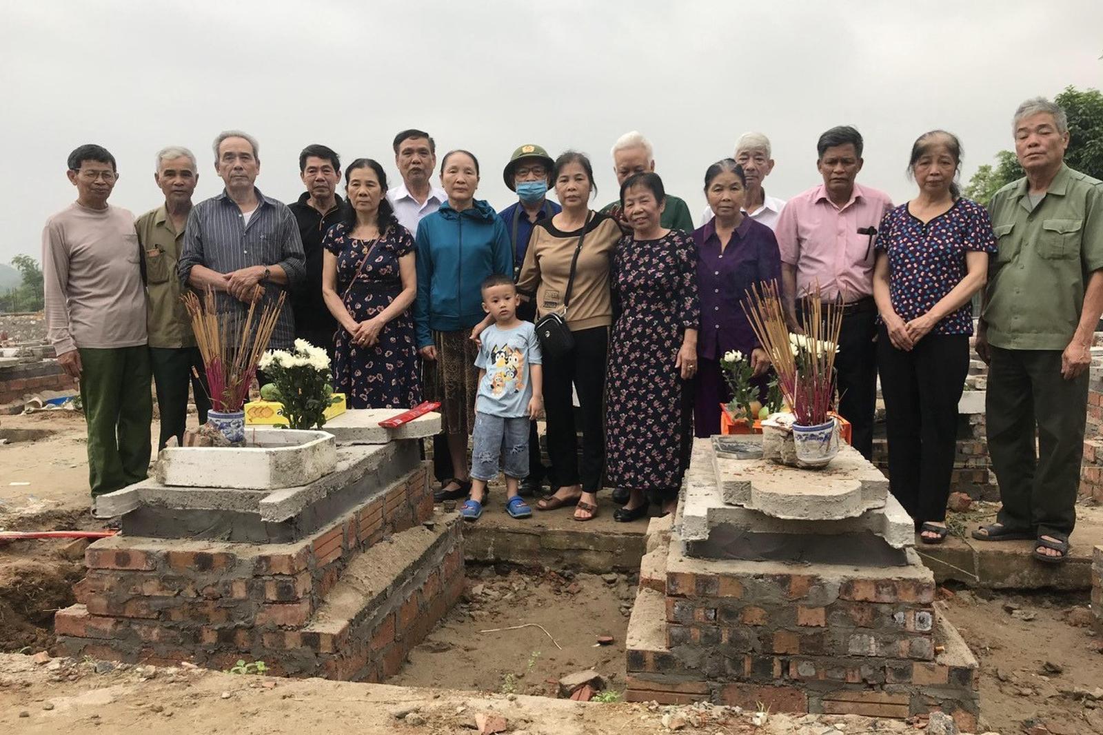 Ông Giám cùng đoàn gia đình liệt sĩ đưa các liệt sĩ trở về với quê hương. Ảnh: NVCC