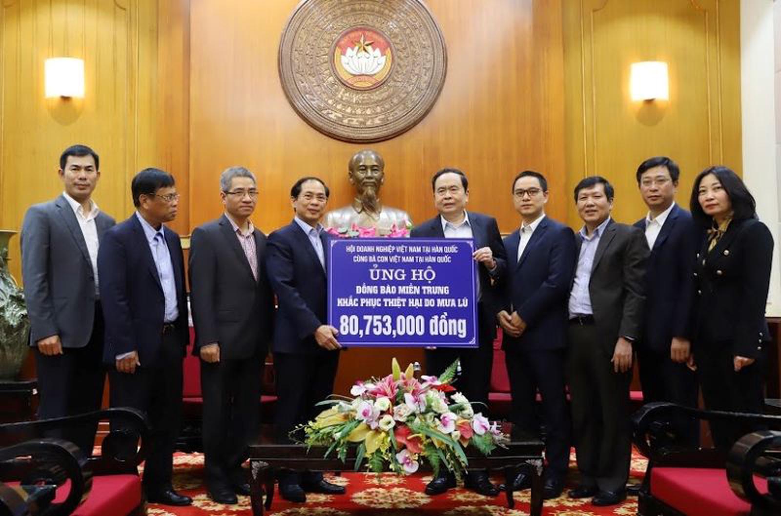 Thứ trưởng Bùi Thanh Sơn đã trao số tiền ủng hộ 80,7 triệu đồng từ Hội doanh nghiệp và bà con Việt Nam tại Hàn Quốc. Ảnh: HD