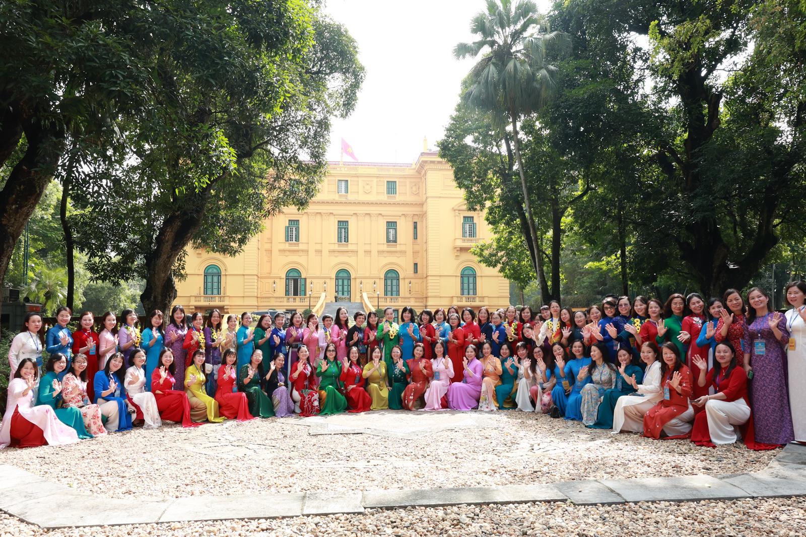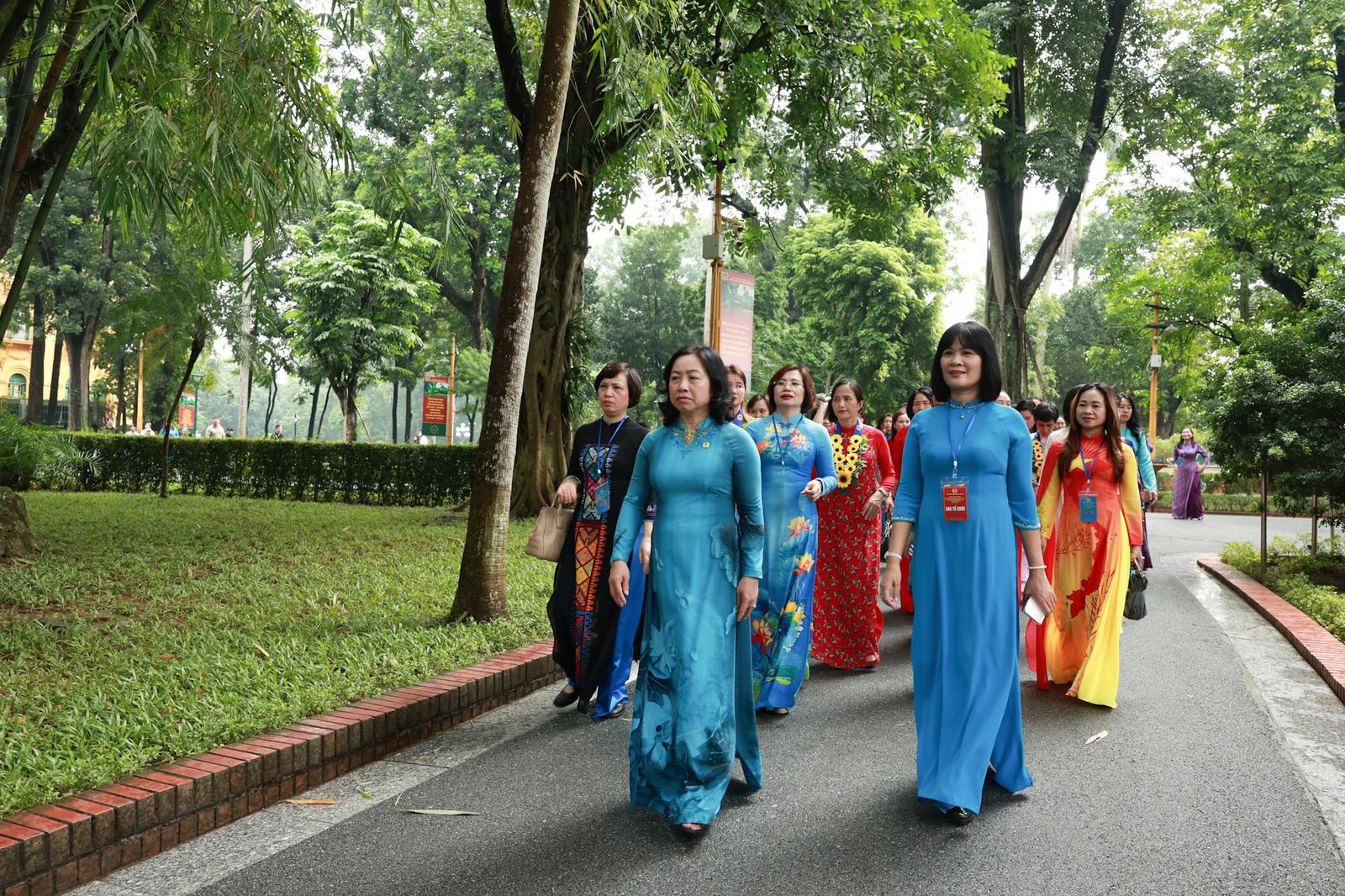 Đoàn đại biểu nữ đoàn viên Công đoàn tiêu biểu đã dự lễ báo công dâng Bác tại Lăng Chủ tịch Hồ Chí Minh. Ảnh Hải Nguyễn