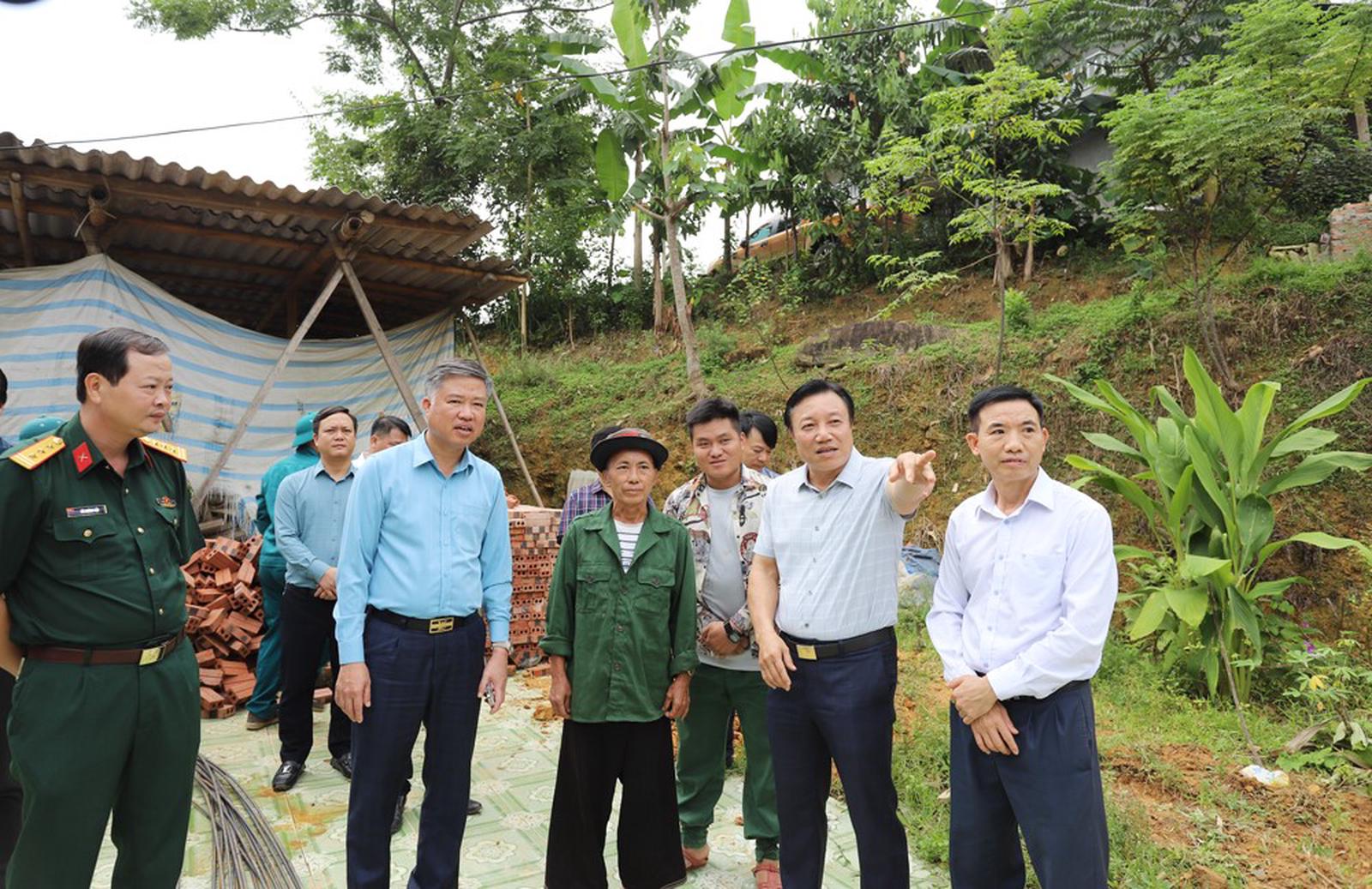 Đoàn công tác tỉnh Phú Thọ thăm hỏi, động viên gia đình ở khu Mỹ Á, xã Thu Cúc trong ngày khởi công xóa nhà tạm. Ảnh: Thu Hương