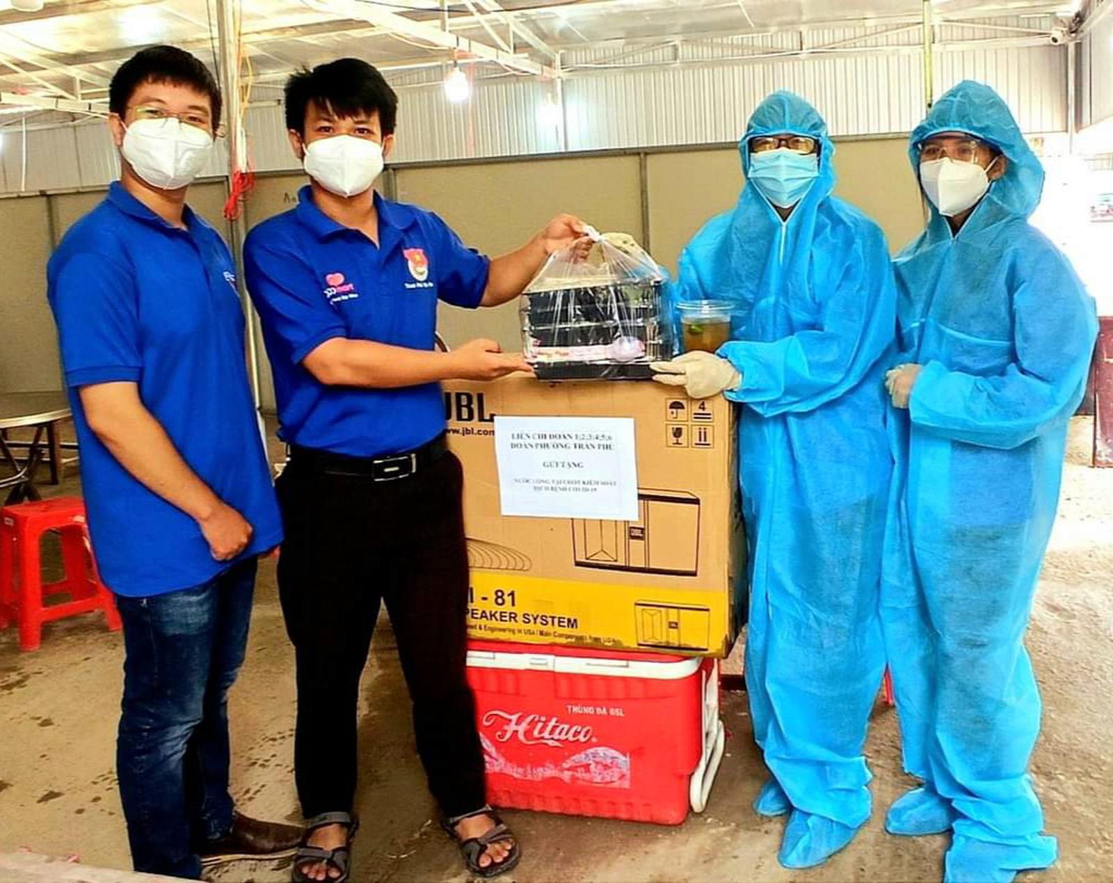 Các chốt kiểm soát dịch bệnh Covid-19 huyện An Lão được tiếp sức những phần quà nhu yếu phẩm. Ảnh: Thanh Hòa