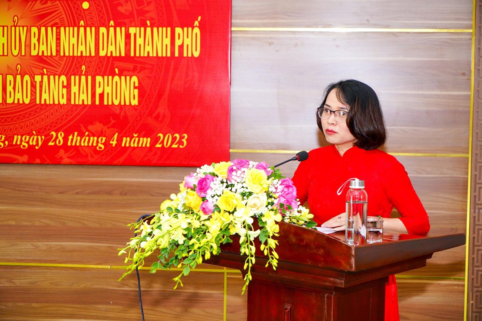 Tân Giám đốc Bảo tàng Hải Phòng Bùi Thị Nguyệt Nga phát biểu. Ảnh: KT