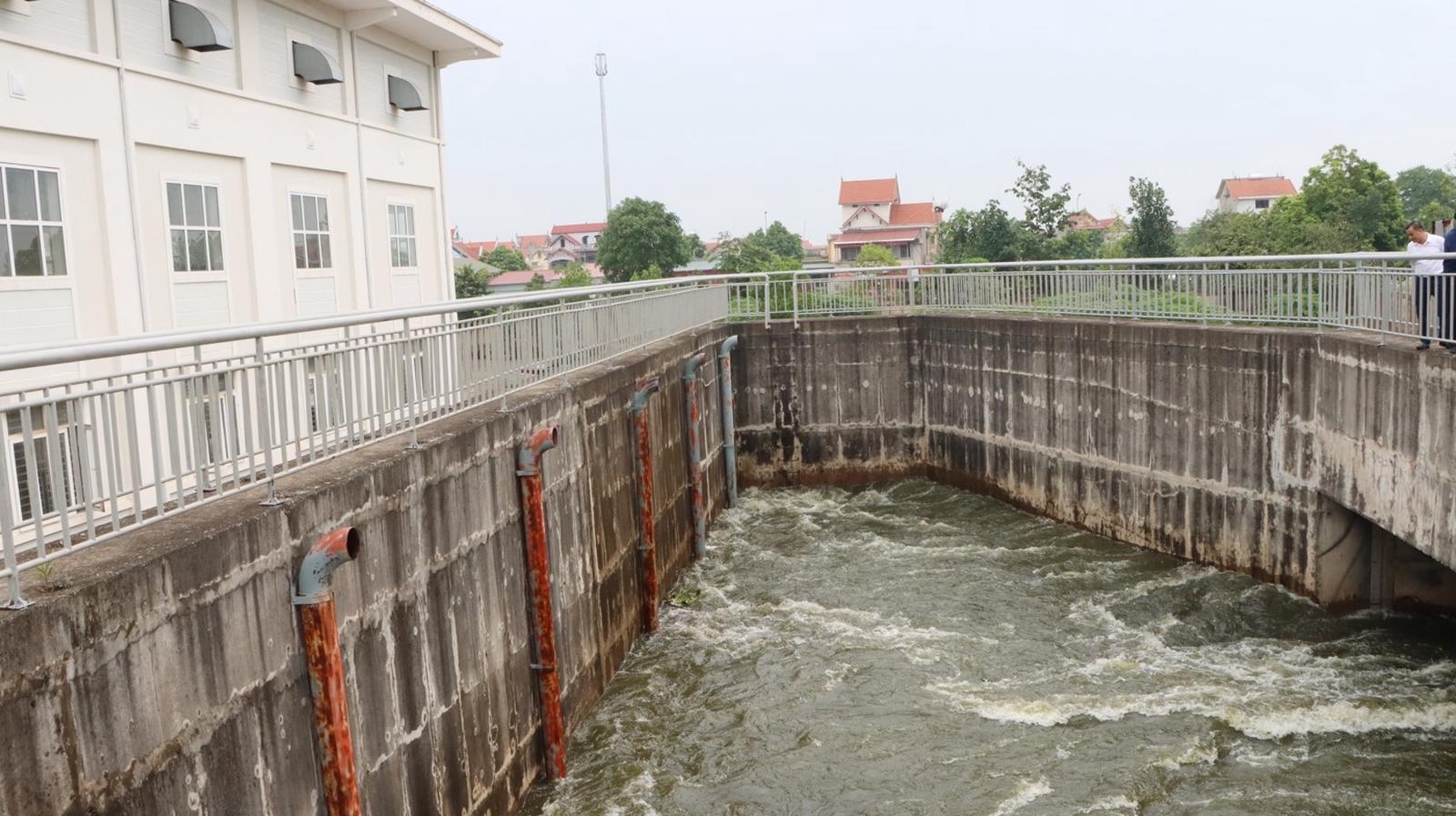 Trạm bơm Nhất Trai, huyện Lương Tài đang tích cực vận hành bơm tiêu thoát nước. Ảnh: PV