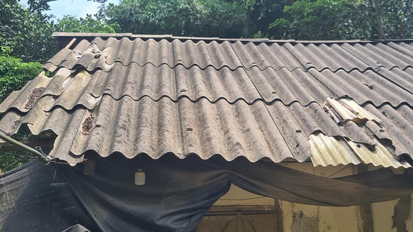 Mái nhà bà Tám thủng lỗ chỗ do đá văng. Ảnh: Bùi Bình