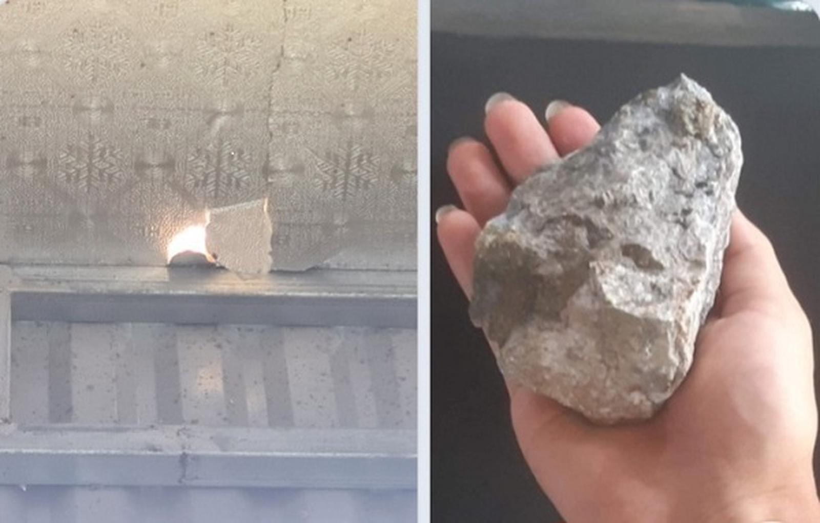 Ông Đức chia sẻ, sự việc xảy ra khi cả nhà đang ngủ trưa, ông giật mình khi nghe thấy tiếng đá rơi trên mái, qua kiểm tra thì phát hiện mái tôn bị thủng một lỗ do viên đá to bằng nắm tay văng trúng.