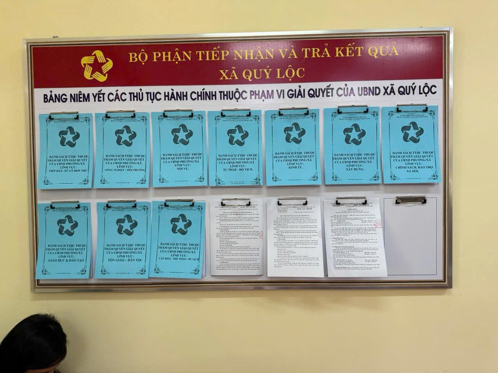 Bảng niêm yết công khai các thủ tục hành chính thuộc phạm vi giải quyết của UBND xã Quý Lộc. Ảnh: Văn Thanh