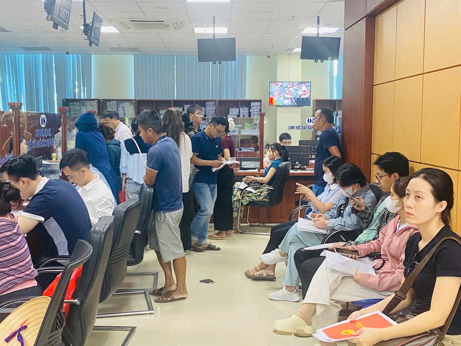 Người dân đến Trung tâm Phục vụ hành chính công phường Hạc Thành để thực hiện các thủ tục hành chính rất đông. Ảnh: Văn Thanh
