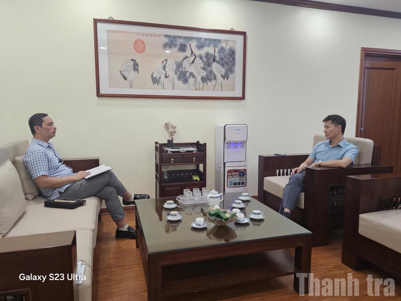 Ông Hà Khoa Văn, Phó Chủ tịch UBND phường Hạc Thành (phải ảnh) trao đổi với phóng viên Báo Thanh tra về mô hình chính quyền địa phương 2 cấp tiếp công dân, giải quyết khiếu nại, tố cáo. Ảnh: Văn Thanh
