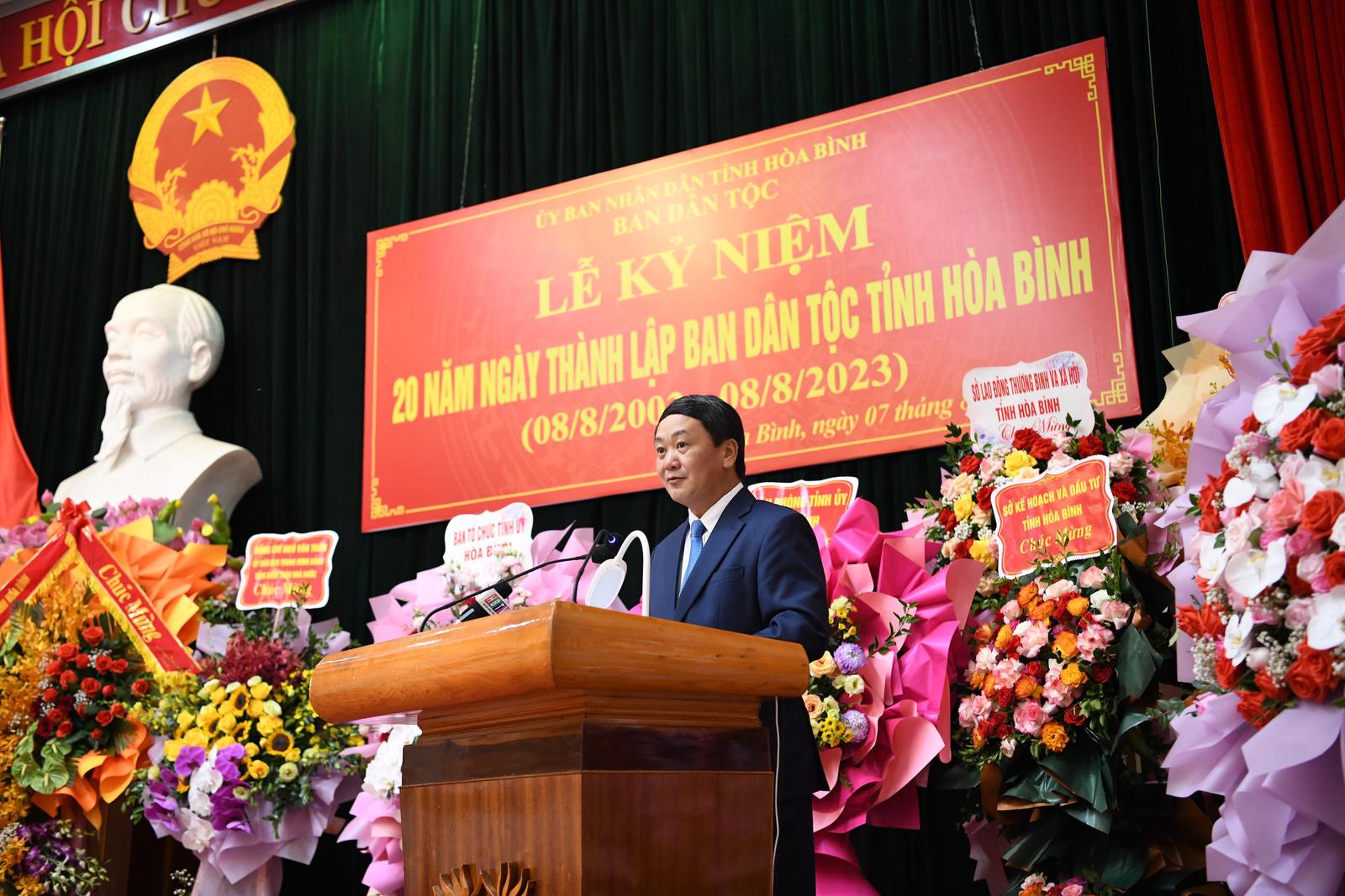 Phát biểu chúc mừng, Bộ trưởng, Chủ nhiệm Ủy ban Dân tộc nhấn mạnh: Công tác dân tộc, chính sách dân tộc trong 20 năm qua trên địa bàn tỉnh Hòa Bình đã được sự quan tâm đặc biệt của các cấp ủy, chính quyền và cơ quan quản lý nhà nước về công tác dân tộc, nhờ đó đã thu hái được nhiều kết quả.