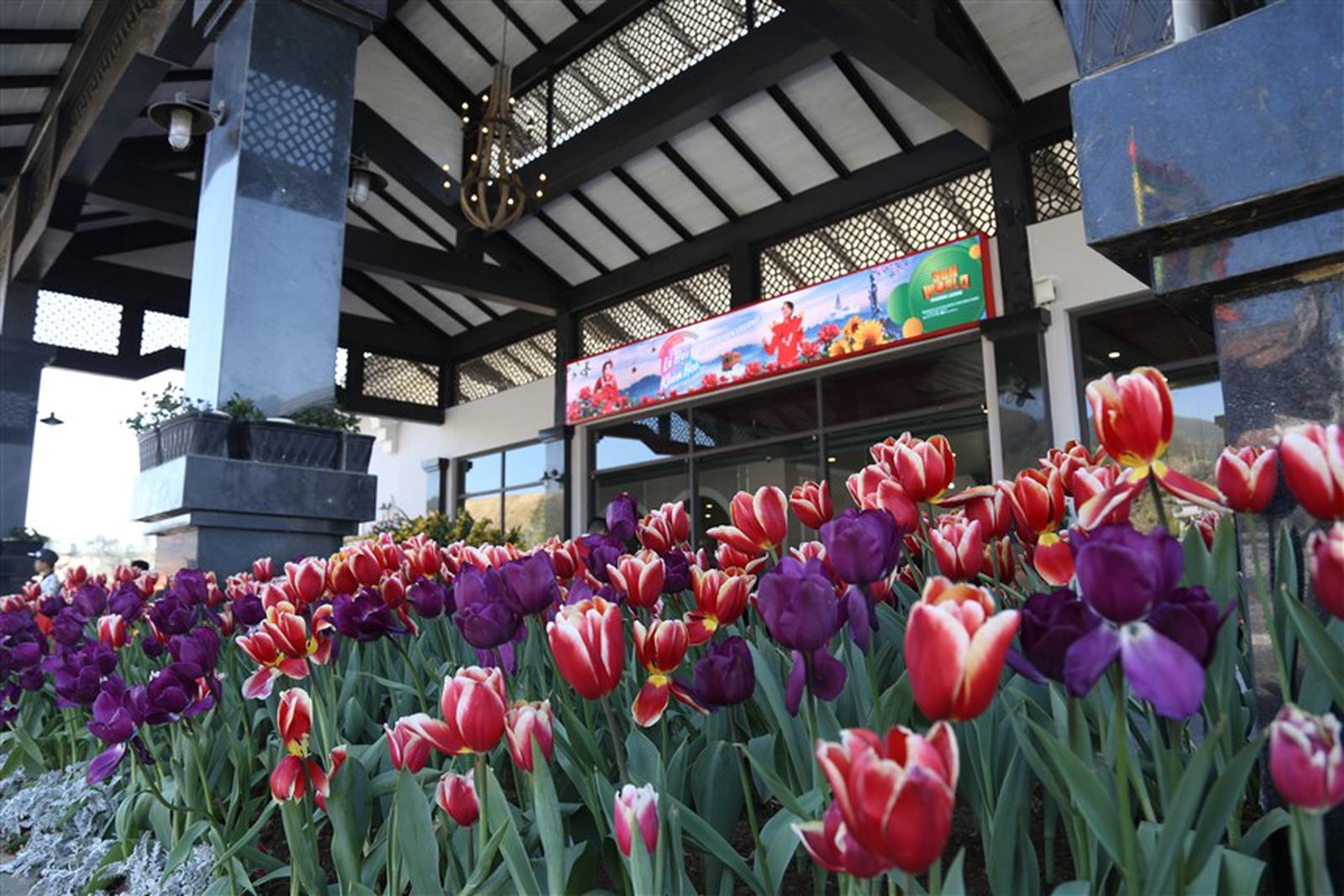 Không gian lễ hội năm nay khiến du khách không khỏi ngỡ ngàng, thích thú, khi thấy tulip nở rực rỡ khắp nơi, cúc lá nho khoe sắc bên thu hải đường, cúc mâm xôi, xác pháo, phong lữ, đỗ quyên, mãn đình hồng, hoa mõm sói… Có tới hơn 30.000 cây tulip và 4000 cây cúc lá nho đã được mang về trang trí trong khuôn viên lễ hội. Cùng với đó, hàng ngàn cây đào, anh đào, mận… mà khu du lịch ươm trồng cũng đang nở hoa đồng loạt.