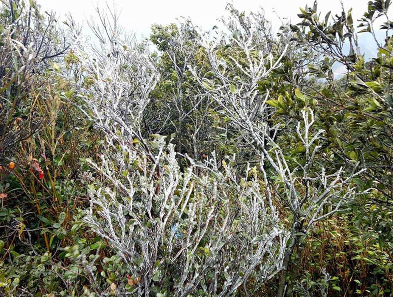 Băng tuyết tiếp tục xuất hiện trong sáng nay tạo nên cảnh tượng đặc biệt trên đỉnh Ô Qúy Hồ (Lào Cai).