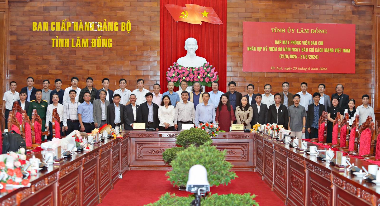 Lãnh đạo tỉnh Lâm Đồng chụp hình lưu niệm với các nhà báo, phóng viên. Ảnh: CTV